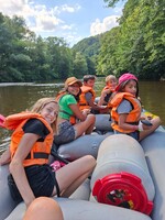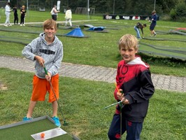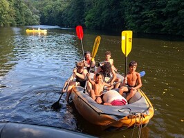 Další den jsme trošku nervózní nasedli na rafty. Vždyť v lodi a s pádlem v ruce většina z nás seděla poprvé. Sice to občas drhlo, neboť bylo málo vody, ale slunce svítilo, voda osvěžovala, takže to bylo bezva. I když jsme coby vodáci byli nováčci, všech pět raftů zdárně doplulo do cíle. Ti zdatnější se pak vrátili na základnu na koloběžkách, malí dojeli autobusem. Další dny následovaly sport, hry a prohlídka zámku Hrubý Rohozec, Návštěvy malé sklářské dílny se nám taky moc líbila, obzvláště proto, že jsem si mohli vyfouknout skleněné baňky a ozdobit je peříčky. A protože jsme nezmaři a jen tak nic nás neutahá, uspořádali nám tety a strejdové dvakrát večerní diskotéku.