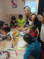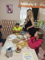 Natálie měla pro děti připravený velmi zajímavý program, který se týkal plýtvání potravinami, kde se děti mohly dozvědět, kolik se vyhazuje potravin a naopak kolik lidí na světě trpí chudobou a rovněž hladem. Dále si společně s Natálií děti mohly připravit zeleninové závitky, které se jim moc povedly. Kromě toho Natálie se svou maminkou připravila pro děti výborný jablečný štrúdl a borůvkové koláče. Nakonec pro děti měla Natálka veliké překvapení a tím byla ukázka a zároveň vyzkoušení korunky, kterou obdržela při soutěži krásy. Moc děkujeme za moc milou a inspirativní návštěvu a slibujeme, že budeme fandit 5. listopadu, kdy se Natálka bude ucházet o celosvětovou Miss Earth .