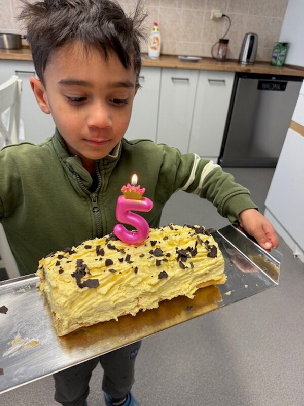 V našem dětském domově jsme dnes prožili krásný a radostný den – Mireček oslavil své páté narozeniny! Oslava se neobešla ani bez bohatého občerstvení – nechyběly slané dobroty a samozřejmě narozeninový dort se svíčkami, které Mireček s nadšením sfoukl.