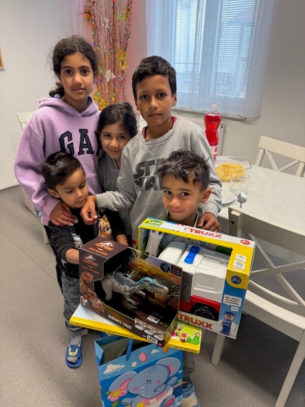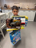 Mireček dostal několik nádherných dárků, které mu vykouzlily úsměv na tváři, a to barevné autíčko, knihu plnou obrázků a příběhů, které si s radostí prohlížel, figurku dinosaura, která se okamžitě stala jeho novým kamarádem.
