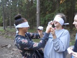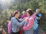 Během týdne k nám na skupiny dorazil dopis, že se skřítkům rozsypaly dukáty. Skřítek Podzimníček v něm prosil o pomoc při hledání. A proč mu nepomoci? Skřítka jsme potkali hned u startu, kde nám vysvětlil, proč dukáty potřebuje. Blíží se podzim a nutně potřebuje nakoupit barvy na obarvení podzimu. Museli jsme projít kus cesty, abychom splnili několik úkolů. Každý splněný úkol byl odměněn dukáty pro skřítka. Úkoly byly někdy náročné, ale my je jako obvykle zvládli. A které úkoly to byly? Například navlékání korálků, napnutý pavouk s míčkem, barevná šifra, krmení se jídlem poslepu, úkolové rybičky, házení šišek na cíl, pořádný nádech, postup podle kostky.