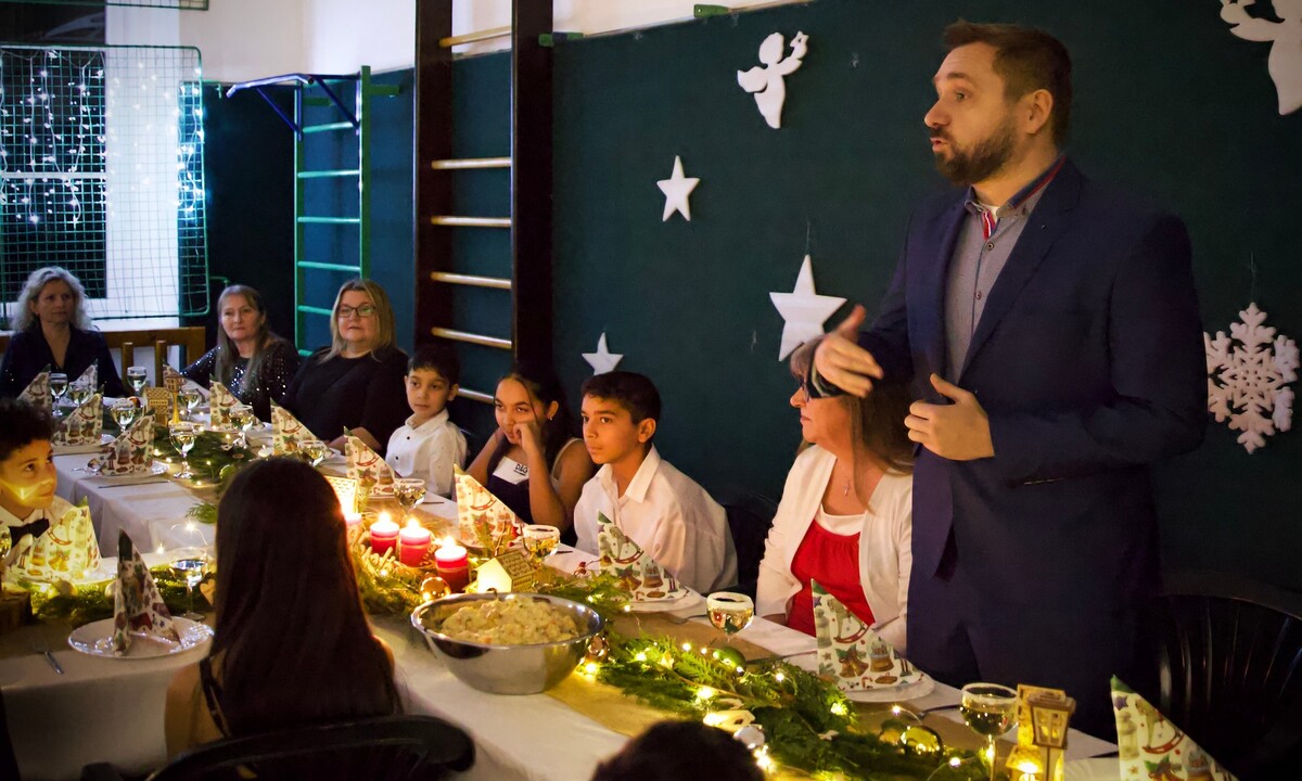 Před samotnou slavnostní večeří nám strejda ředitel, společně se slavnostním přípitkem, sdělil pár slov a oznámil dětem další dárek, tedy vánoční pobyt do Babylonu, který nás čeká po svátcích a zároveň všem popřál krásné a pohodové Vánoce a úspěšný rok 2026.
